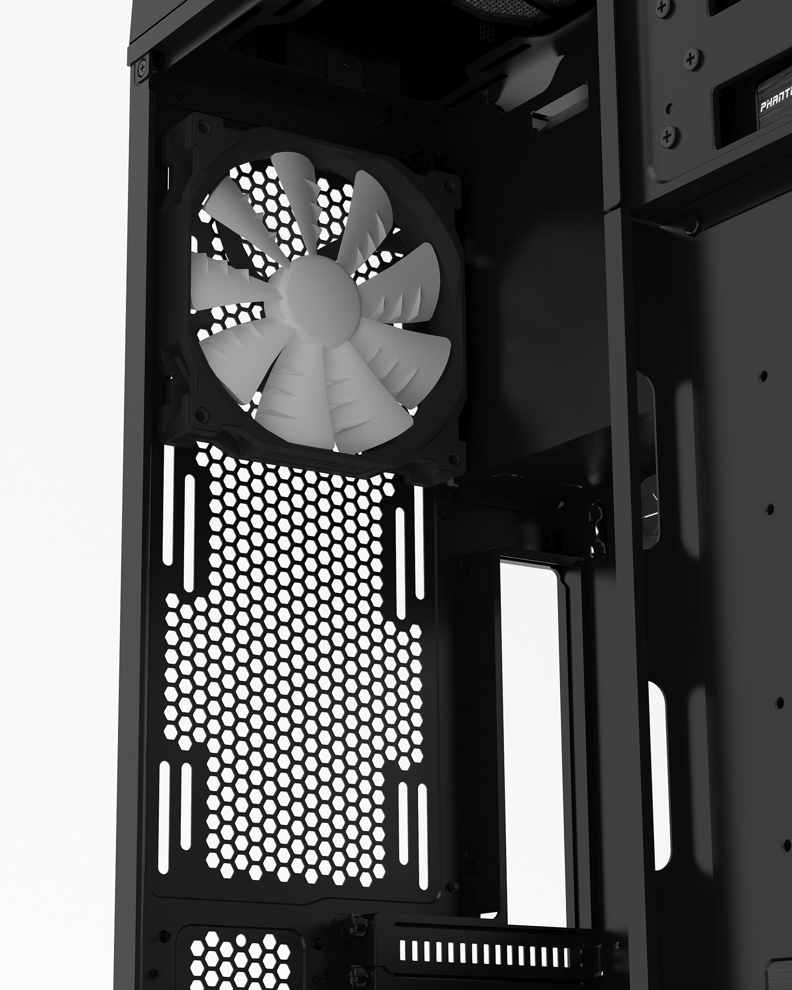 Enthoo Mini XL DS 包含2 x 140mm 前置風扇, 1 x 140mm 後置風扇. 但仍然具有擴充升級風扇的空間. 所有的預置風扇都是Phanteks 最新設計優化效能的140mm 風扇. Phanteks Enthoo Mini XL DS 發揮了極致的可能性.