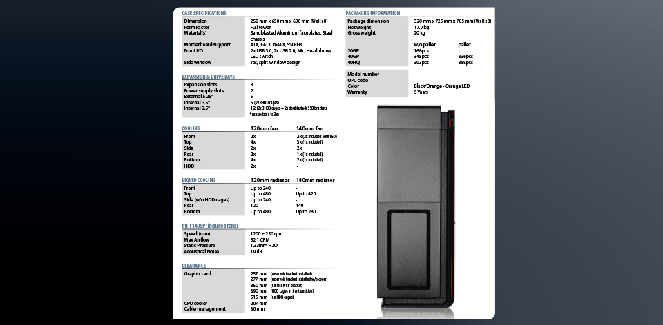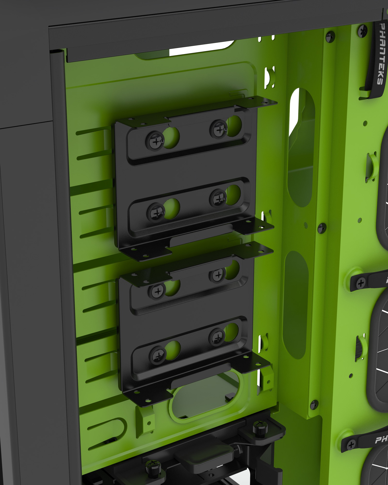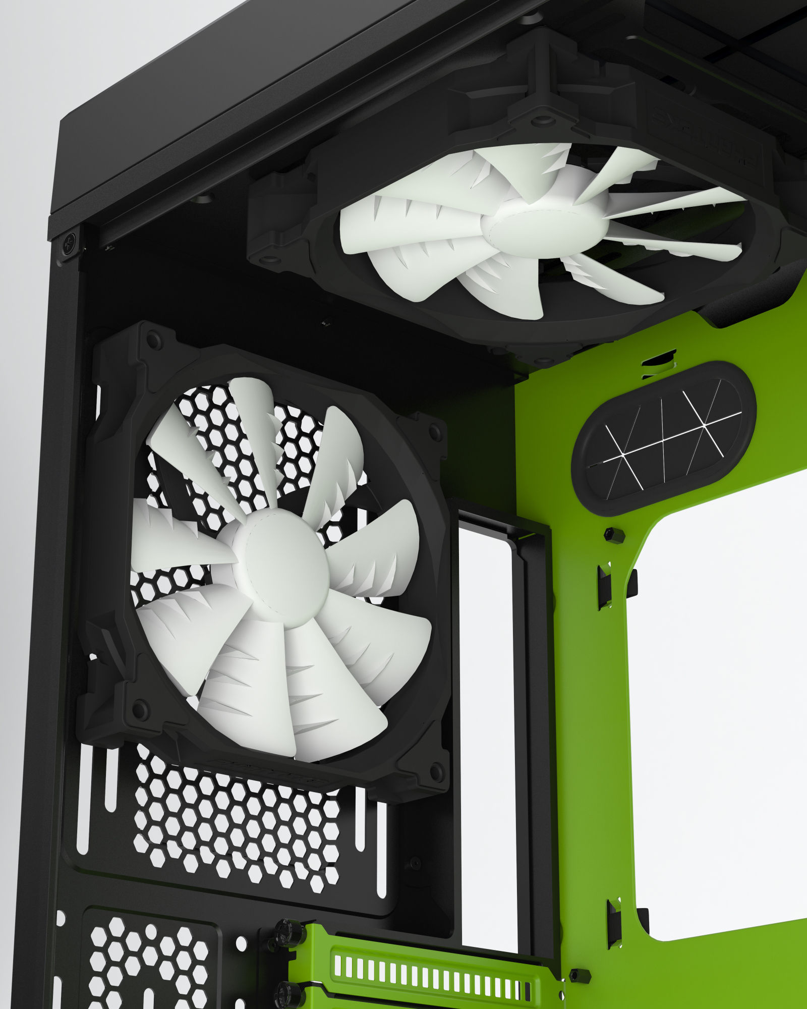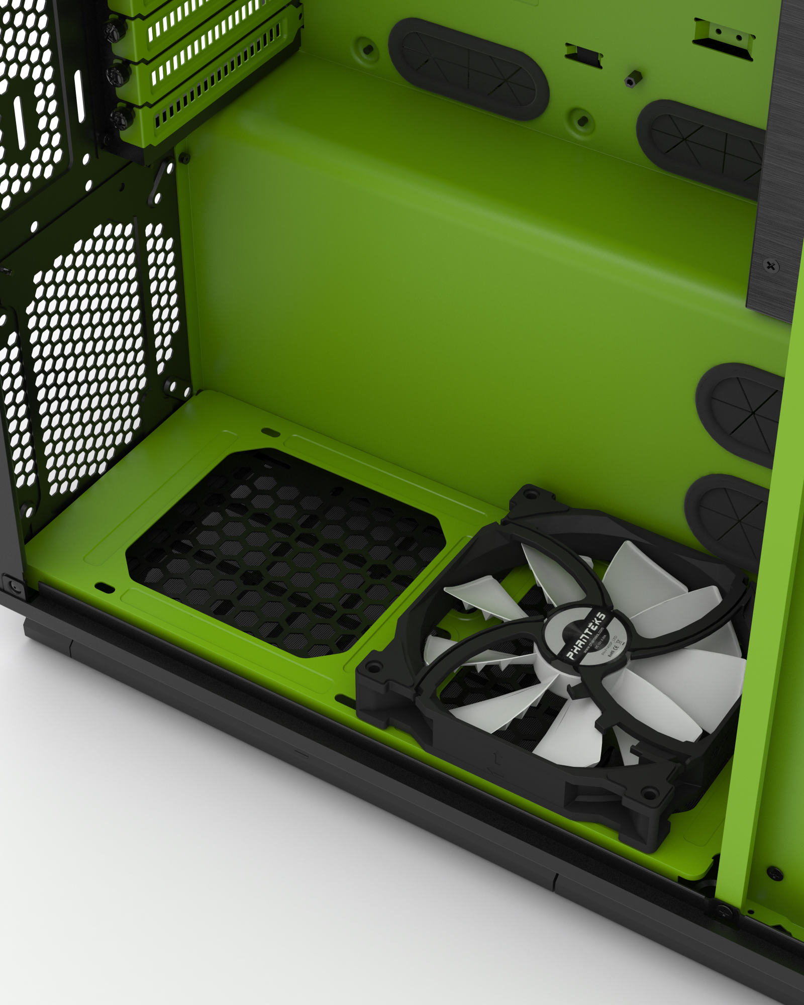 Enthoo Primo包含了1 x 140mm 置頂風扇, 2 x140mm LED 前置風扇, 1 x 140mm 後置風扇, 及1 x 140mm 底部風扇. 仍然具有擴充升級風扇的空間. 所有的預置風扇都是Phanteks 最新設計優化效能的140mm 風扇. Phanteks Enthoo Primo 發揮了無限的可能性.