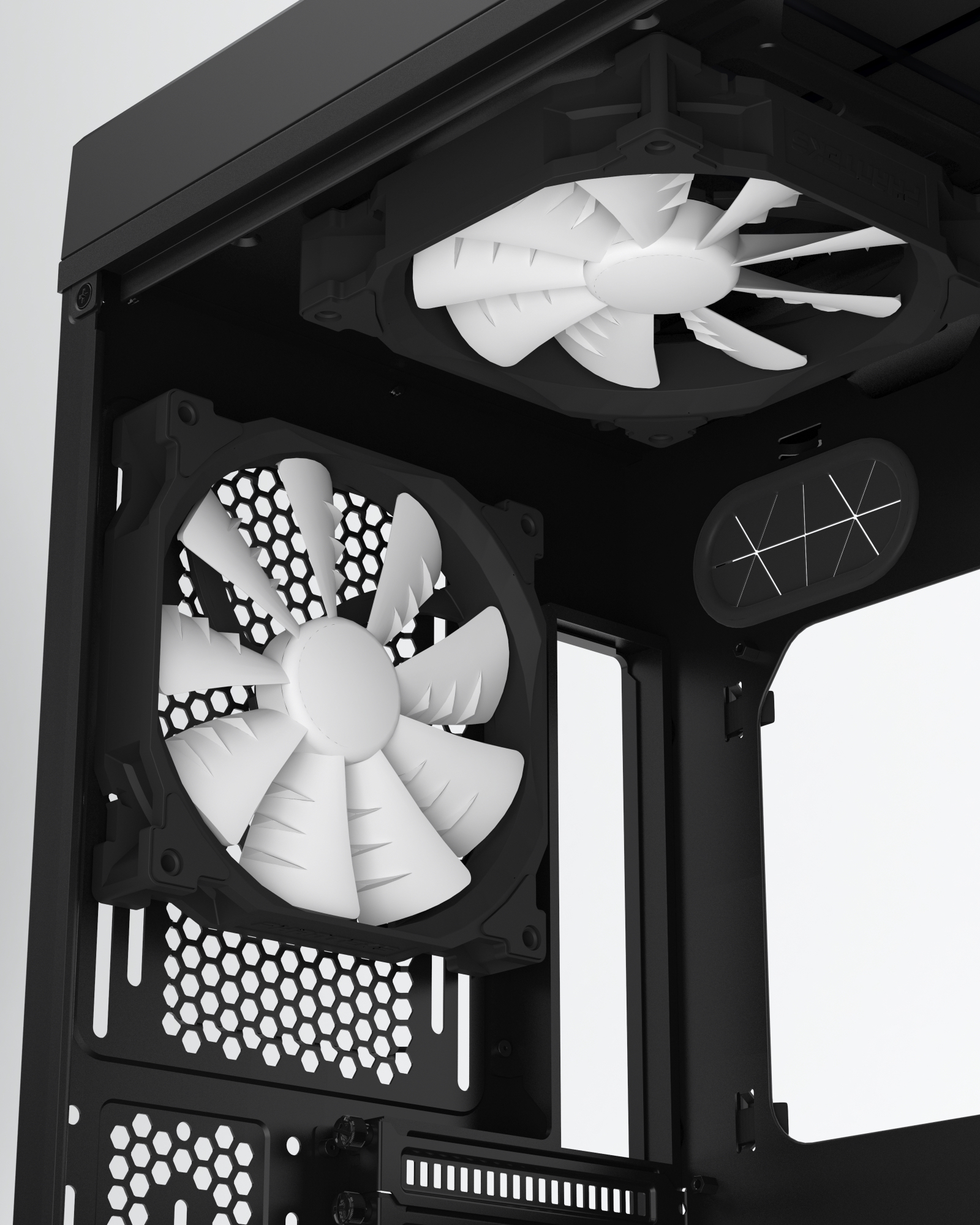 Enthoo Primo 包含了 1 x 140mm 置頂風扇, 2 x140mm LED 前置風扇, 1 x 140mm 後置風扇, and 1 x 140mm 底部風扇. 仍然具有擴充升級風扇的空間. 所有的預置風扇都是Phanteks 最新設計優化效能的140mm 風扇. Phanteks Enthoo Primo 發揮了無限的可能性.