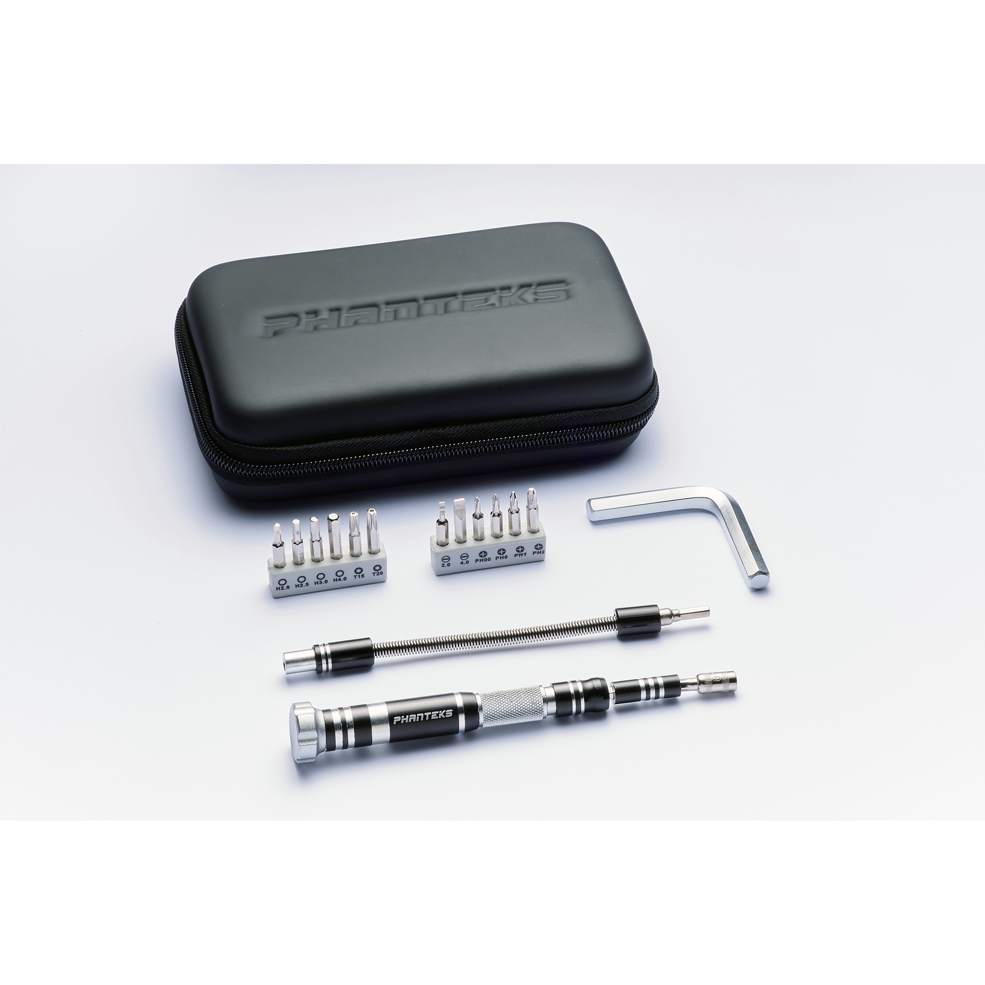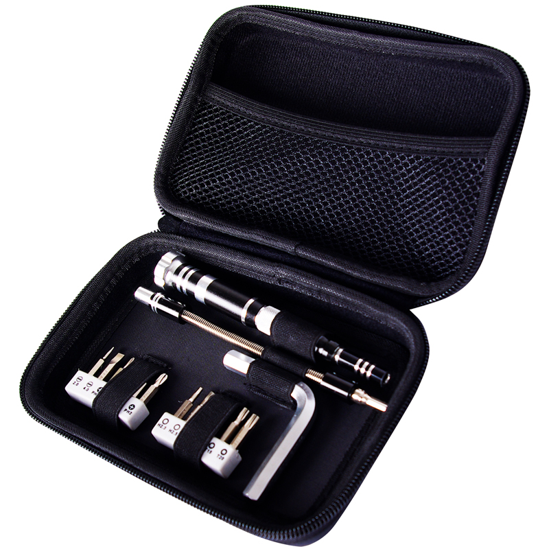 16件工具套件非常適合初次使用的使用者和愛好者,包括:內六角扳手,1個磁性可伸縮螺絲起子手柄,13件(H2.0, H2.5, H3.0, H4.0, T15, T20, PH00, PH0, PH1, PH2, 2.0mm, 4.0mm, 5.0mm六角套筒頭)和柔性轉軸。 體積小可攜帶,包括黑色保護殼有助於保持工具的定位和管理。