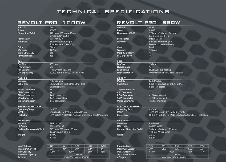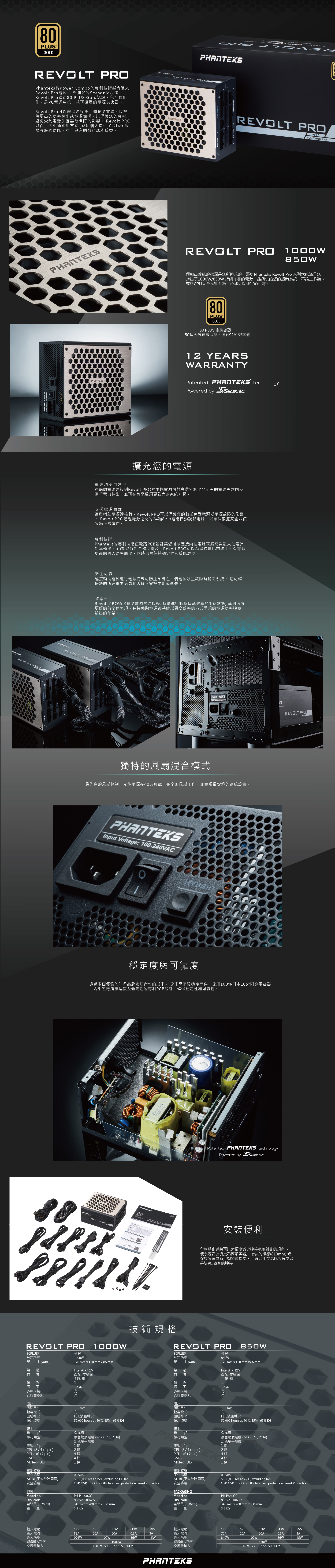 Phanteks將Power Combo的專利技術整合進入Revolt PRO電源。 與知名的Seasonic合作,Revolt Pro獲得80 PLUS Gold認證,完全模組化,是PC電源中第一款可擴展的電源供應器。 Revolt Pro可以讓您連接第二個輔助電源,以提供更高的功率輸出或電源備援,以保護您的資料避免受到電源供應器故障時的影響。 Revolt PRO以真正的即插即用方式, 為每個人提供了高階伺服器等級的功能,並且具有明顯的成本效益。