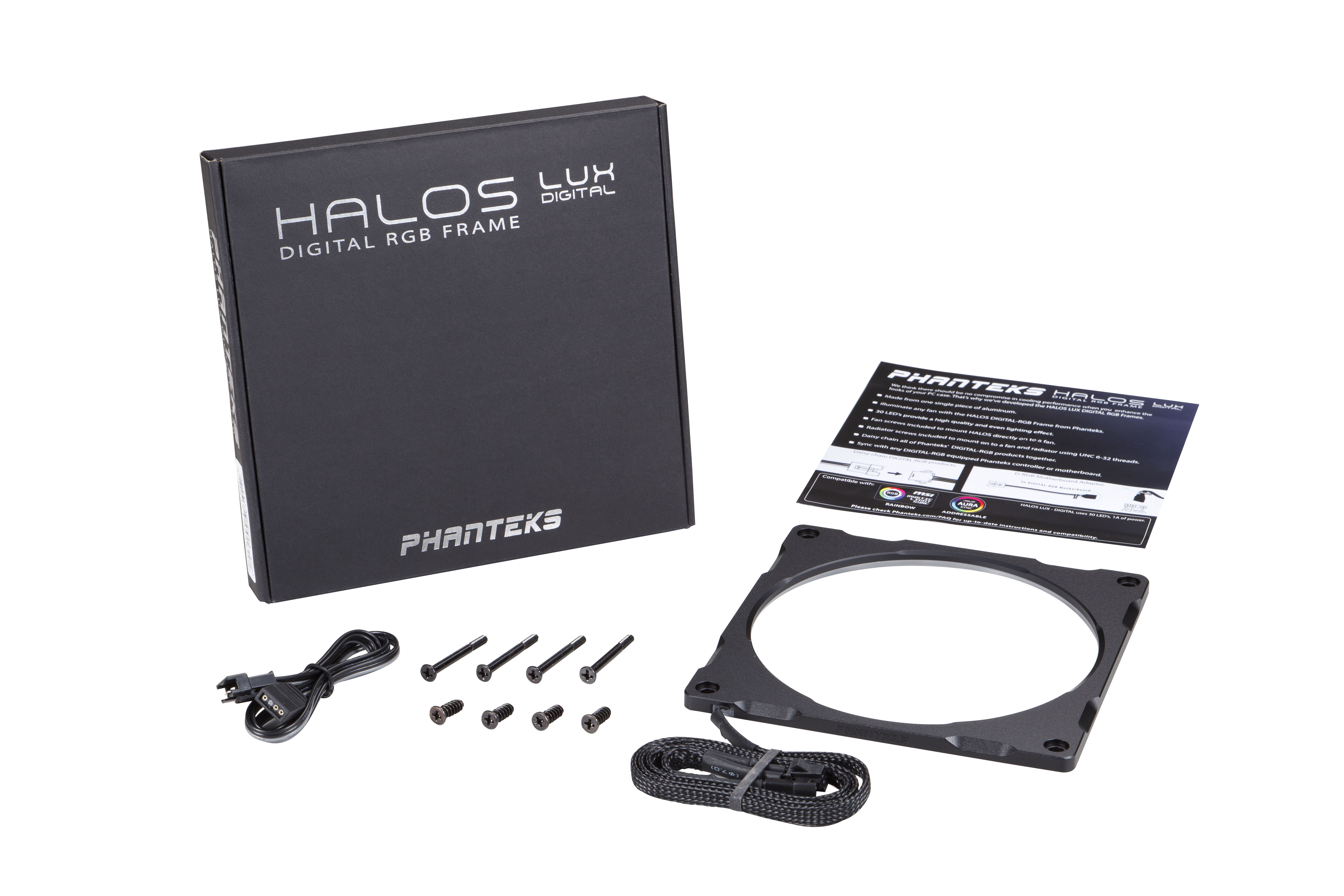 Halos Lux數位RGB LED風扇框架, 可用於投射不同的燈光效果於不同種類材料或顏色的風扇葉片,產生具有高亮度的氣氛燈光效果。 這意味著即使是由PBT材料製成的高性能風扇,如Phanteks的MP和SP風扇,也可以用任何顏色產生絕佳的效果。 使用Halos Lux Digital RGB風扇框強化燈光效果時,並不會對性能產生任何影響。