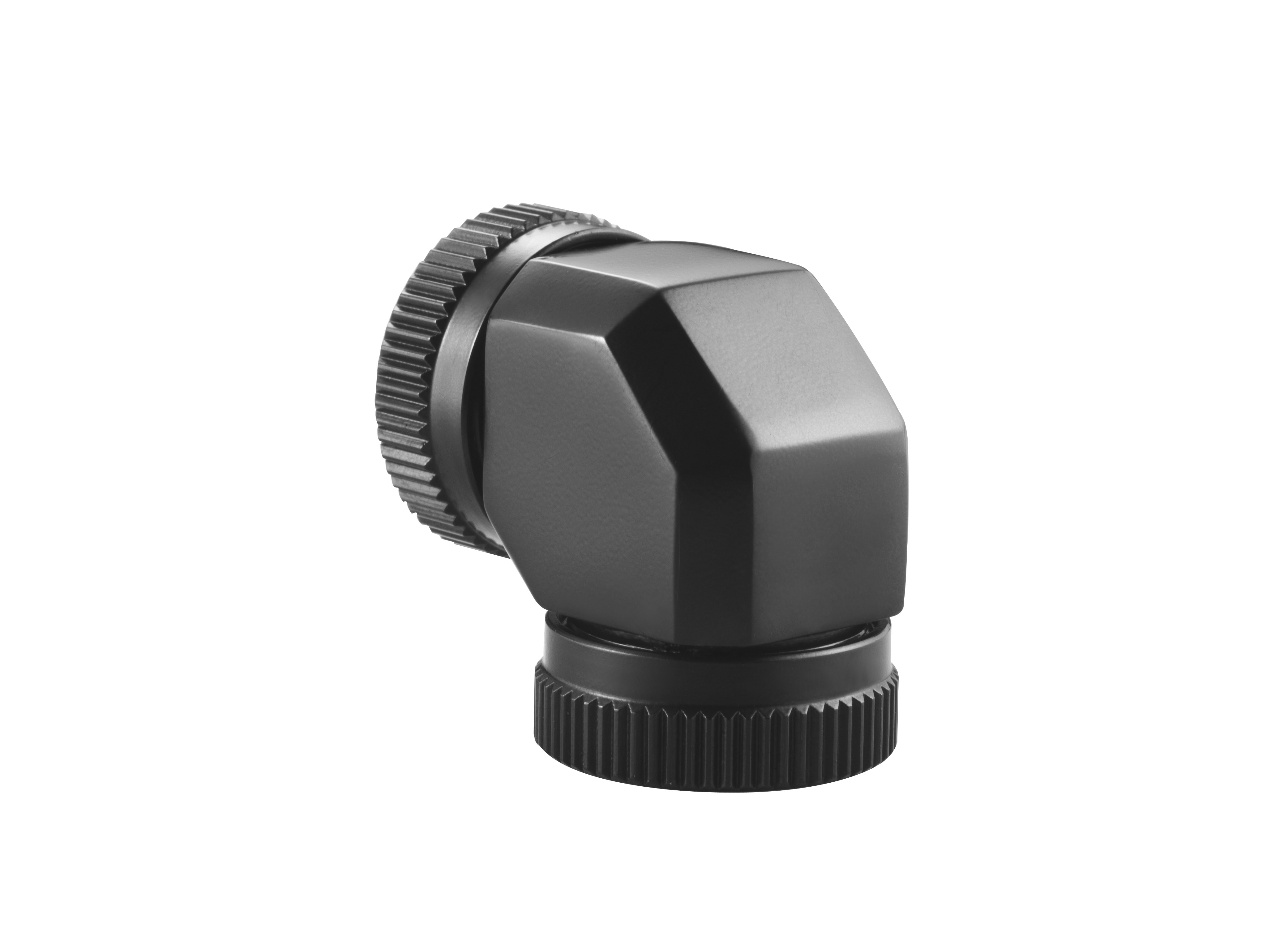 Phanteks免工具設計的12mm外徑硬管90°轉接接頭, 可將兩個外徑12mm硬管連接在一起。